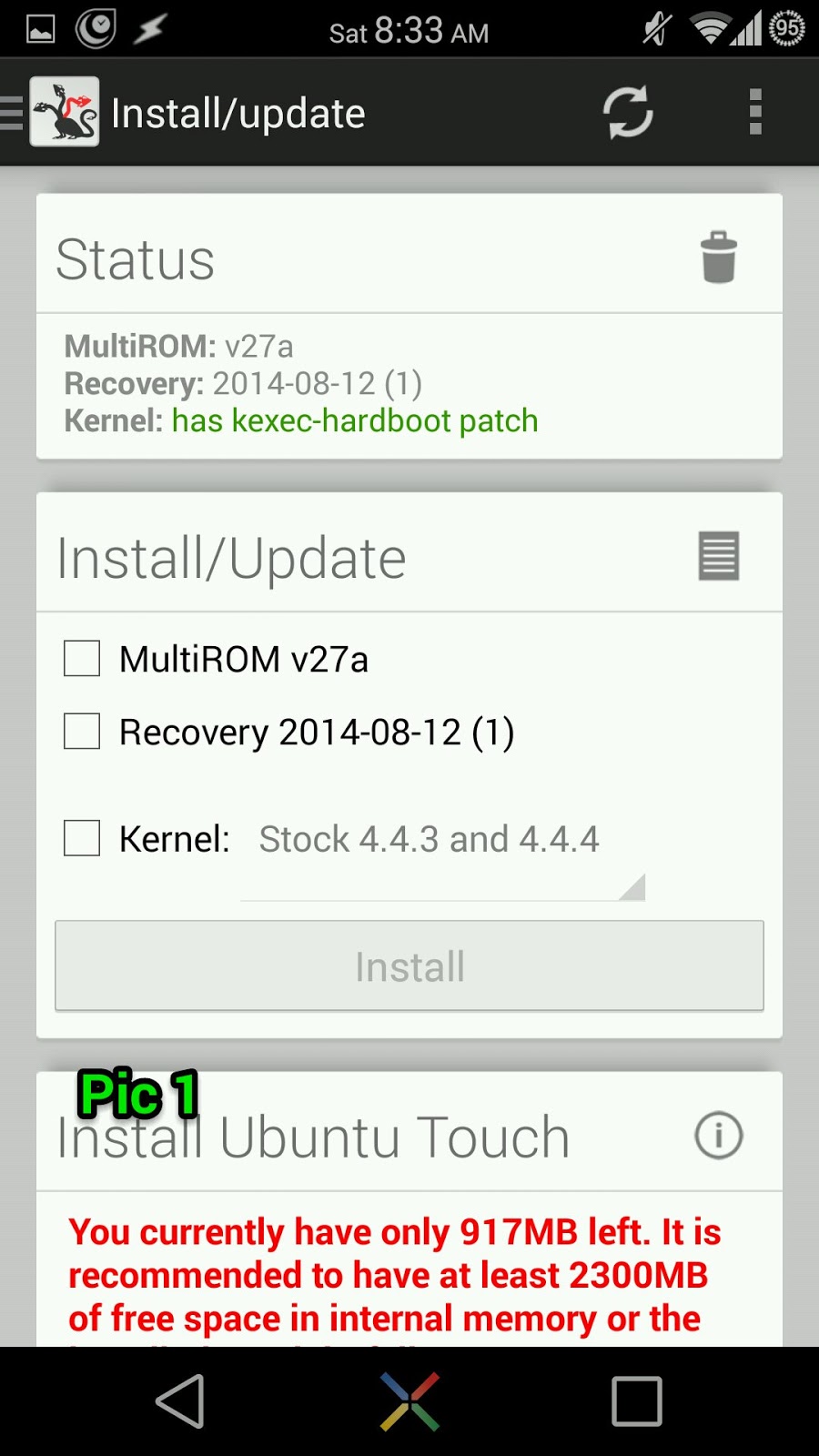 Gunakan aplikasi  MultiROM Manager untuk menginstall Ubuntu Touch.  Catatan : Ubuntu Touch masih dalam pengembangan. MultiROM harus selalu di update untuk mendapatkan perubahan terbaru yang ada di Ubuntu.