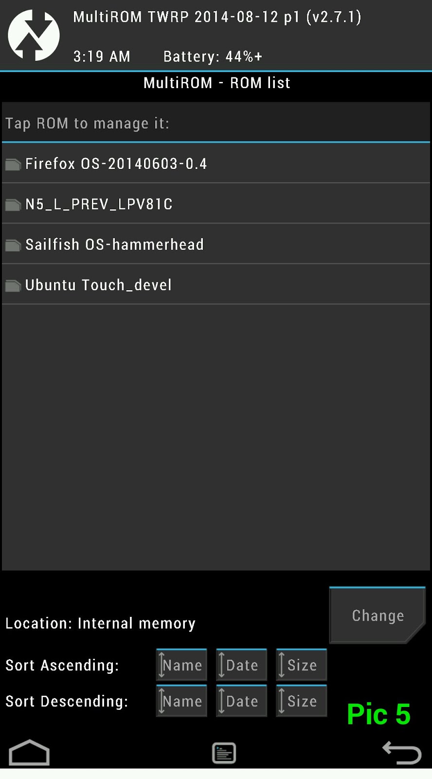 Pic 4  : Tampilan Menu MultiROM di TWRP